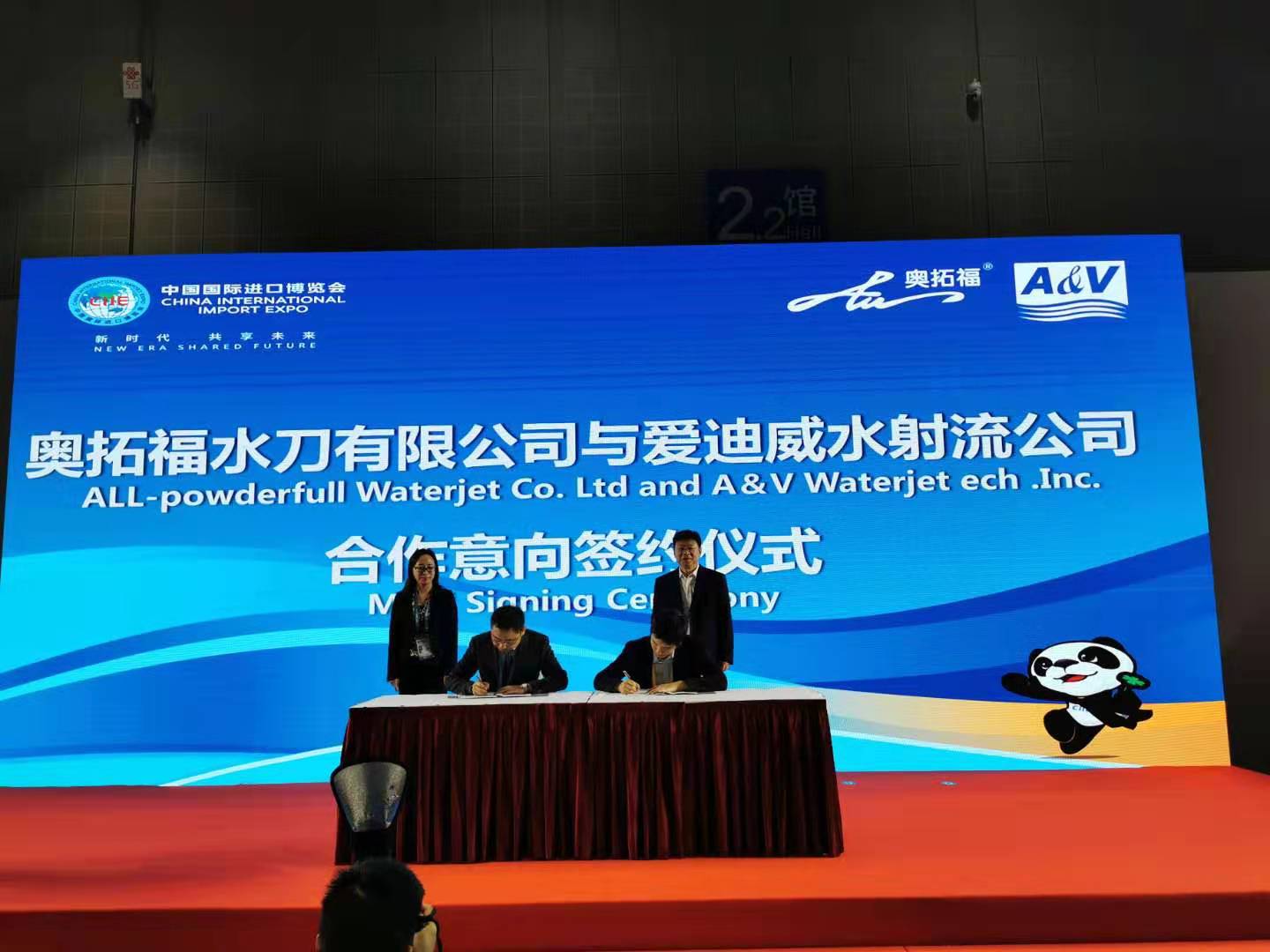奧拓福戰(zhàn)略合作伙伴——美國愛迪威(A&V)公司進(jìn)博會現(xiàn)場刮起“水射流技術(shù)旋風(fēng)”。