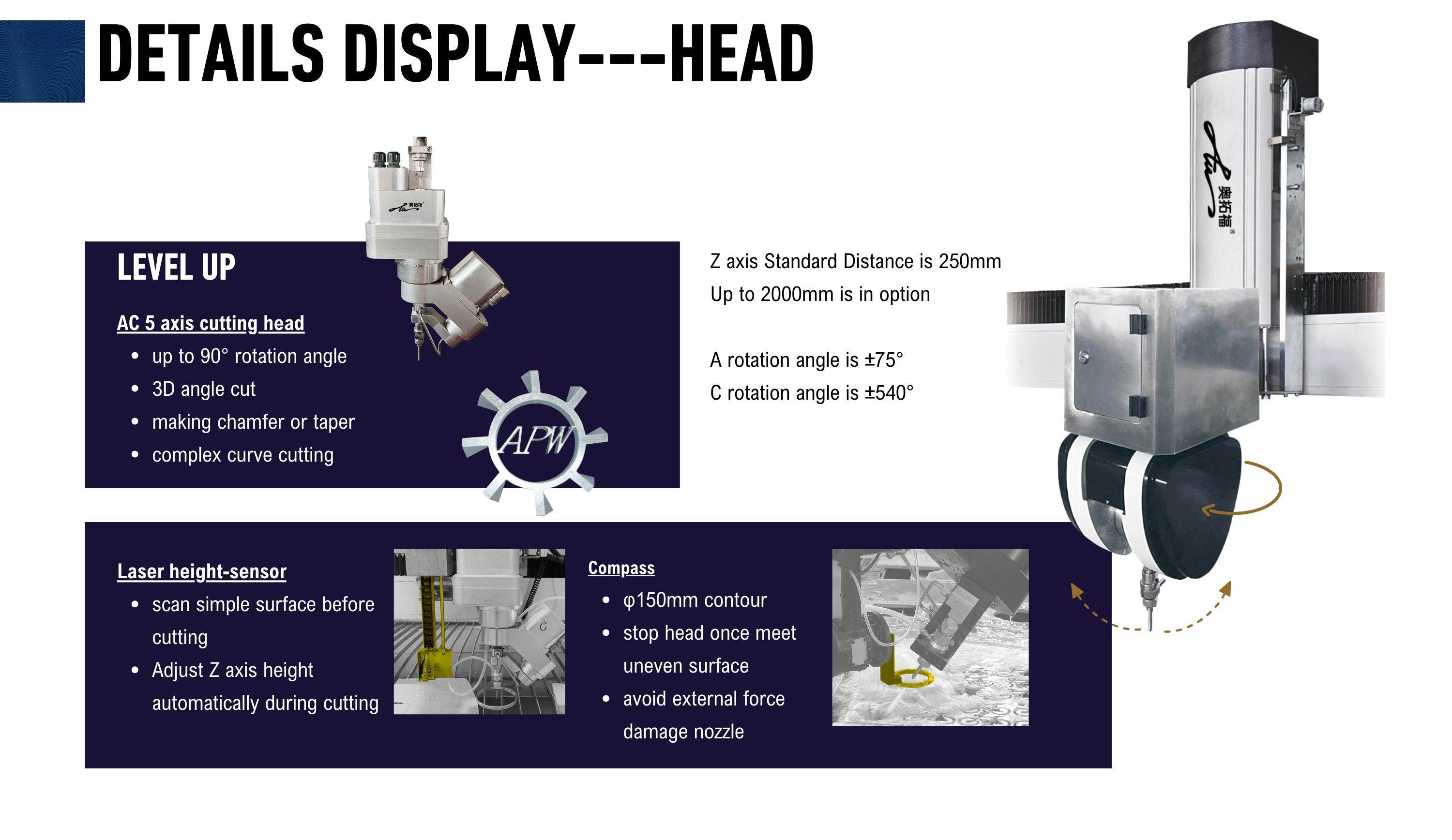 2、ACWZ-JET 大角度錐度切割刀頭:大角度5軸切割使用,適合復(fù)雜形狀和三維切割任務(wù),支持大角度錐度切割,適用于航空航天、汽車制造等高精度加工場景。