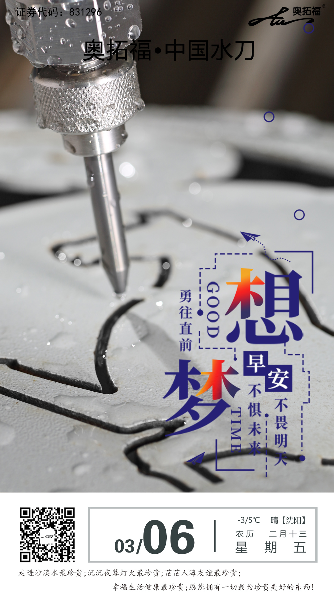 奧拓福公司成立以來,公司通過不斷的與國際知名企業(yè)的緊密合作,積累了大量經(jīng)驗(yàn)及技術(shù),水刀產(chǎn)品經(jīng)過不斷的改進(jìn)和優(yōu)化,質(zhì)量穩(wěn)定,性能卓越,完全滿足了市場期望。