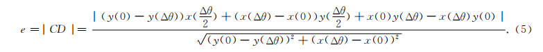 由式(3),(5)可知,圓弧半徑犚 和橢圓方程一定時(shí),Δθ取值越小,則擬合誤差e越小。