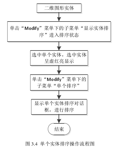 單個實(shí)體排序,即一次只能對一個實(shí)體進(jìn)行排序操作。首先要進(jìn)入實(shí)體排序狀態(tài),然后選中單個實(shí)體,“單個排序”按鈕才會被激活,單擊“單個排序”按鈕,彈出單個實(shí)體排序?qū)υ捒?,選擇想要的加工序號,點(diǎn)擊“OK”即可。單個實(shí)體排序操作的流程圖如圖 3.4